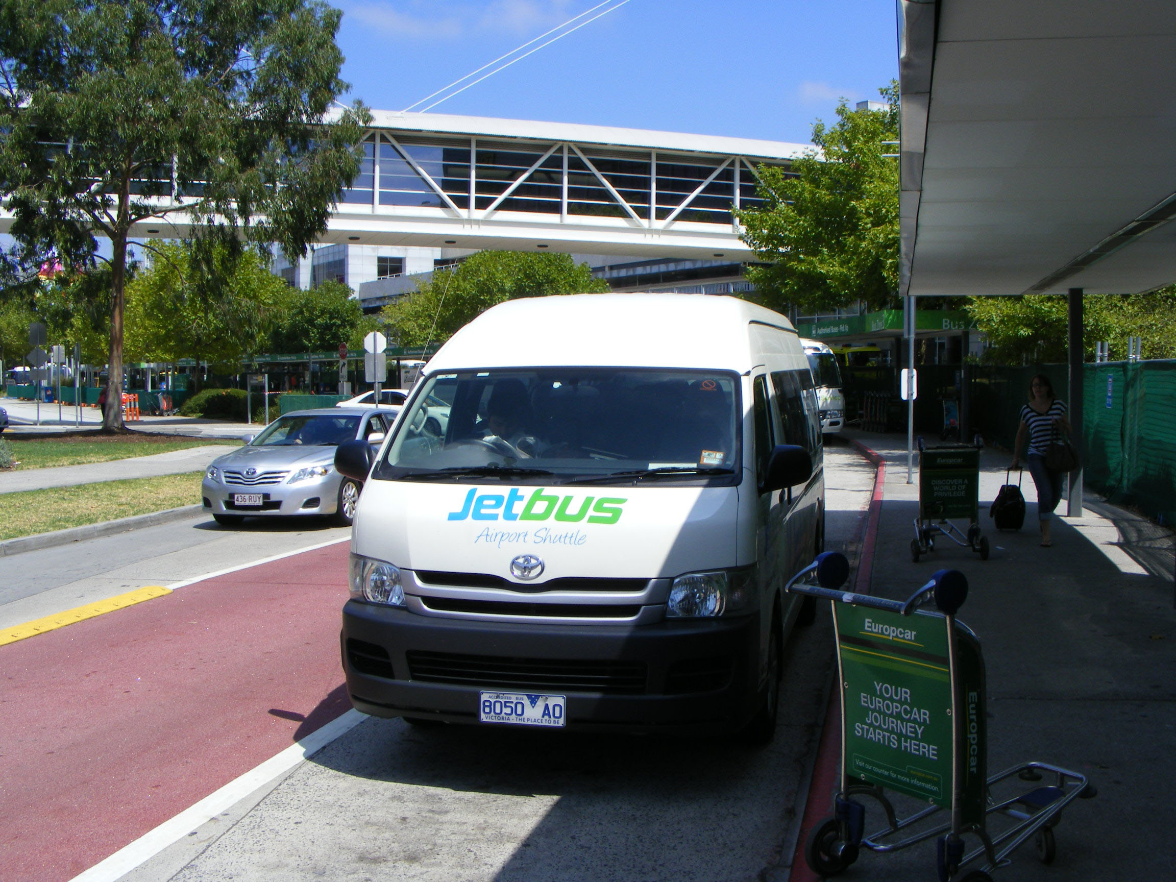 Before the advent of Skybus Jetbus linked downtown CBD hotels with the Airport at Tullamarine, where their bus fleet was based. Unfortunately the company's service was not the best, with tales of missed flights and no-show buses. When Skybus came along it was the beginning of the end. They offered fast regular services from the Airport to the city and a fleet of smaller buses for hotel transfers, though this additional service disappeared around COVID time if not before. Typical of the Jetbus fleet was this 1988 Hino Rainbow, 3134AO, seen outside the Holiday Inn in April 2010. |