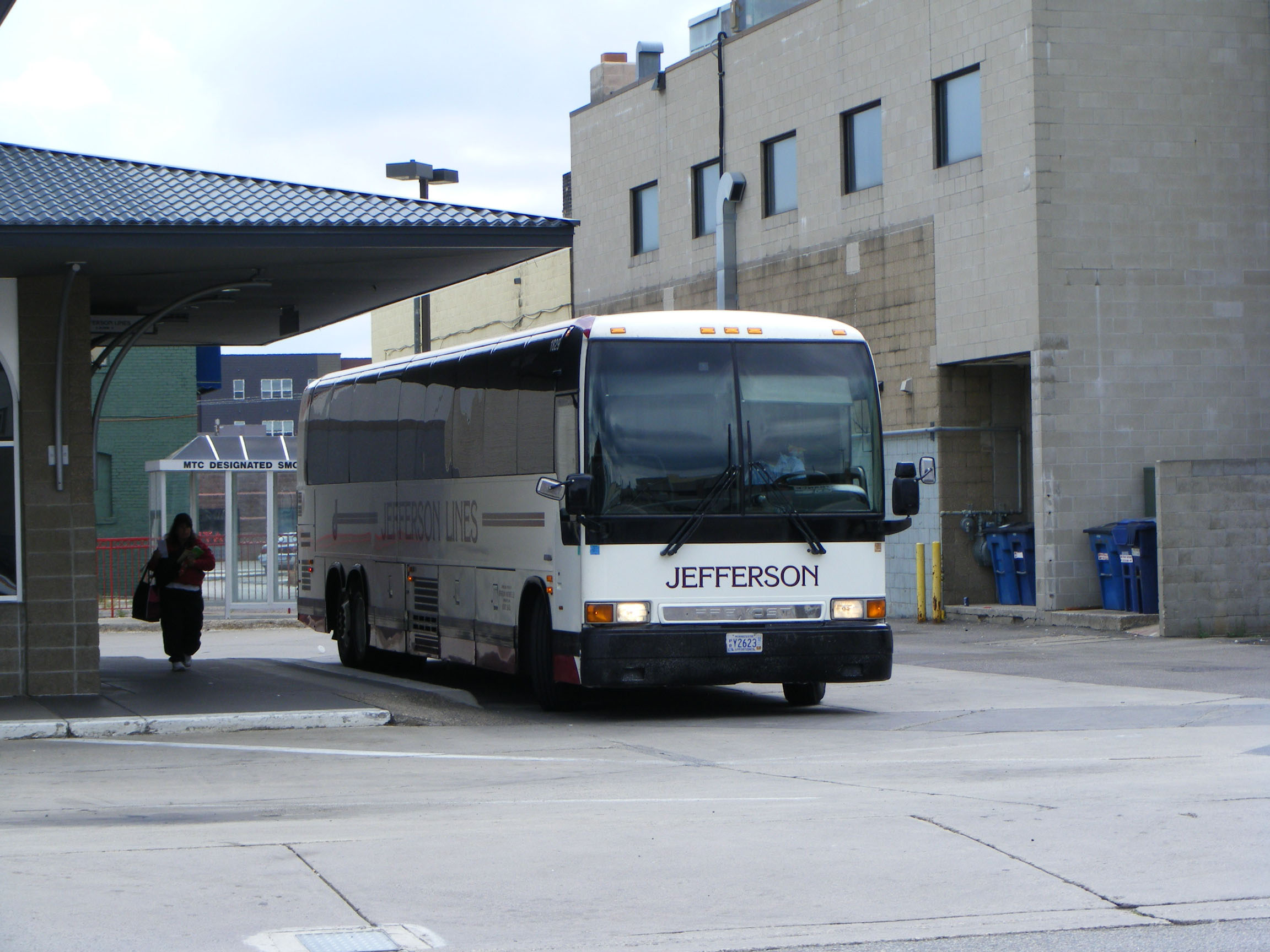 Jefferson Lines are based in Minneapolis but operate a network of express services across Minnesota and the Mid West going as far west as Spokane and south to Texarkana. The company is an avid MCI customer, but the Prevost Le-Mirage XL-II, 1829, was one of a pair bought in 2001 bringing the Prevost fleet strength to around twenty. All are now withdrawn, though the 2025 fleet includes four Temsa TS-35 new in 2012 and more recently a similar number of Van Hools out of a total of over one hundred motorcoaches. The Prevost was seen in August 2011 when all these pictures were taken.