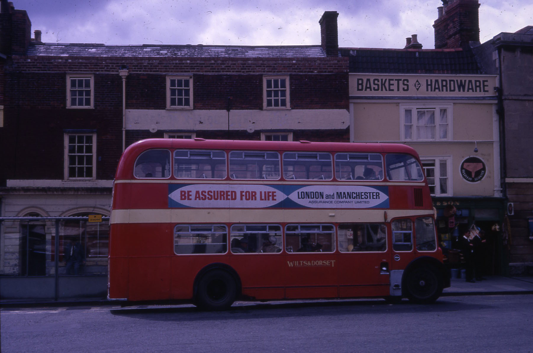 An FS Lodekka is seen in Swindon Bus Station around 1970 next to a Bristol Omnibus FLF and a Corporation CVG6 and Fleetline.